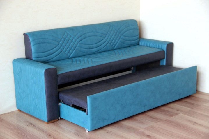Разтегателен диван е друг често срещан тип мебели. Той има прост, лек дизайн и просто се разгъва: седалката се издига, докато щракне и се спуска с облегалката.