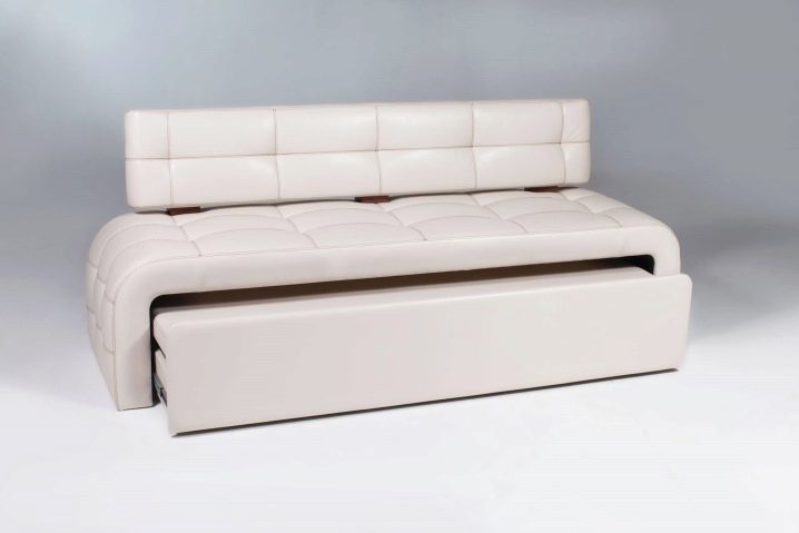 Дивани без подлакътници, като правило, имат сгъваем механизъм като “книги” или “еврокниги”. Такива мебели изглеждат леки и ефирни, не заемат много място, но изискват определено пространство при разгъване.