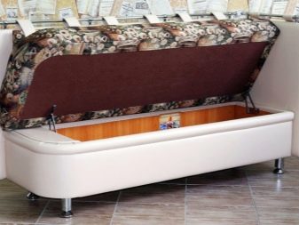 Ъглов диван ще спести място, но може да не се впише в интериора на кухнята. Но ще има повече места за сядане. В допълнение, ъглови дивани за трапезарии най-често са оборудвани с чекмеджета, където можете да скриете ненужни неща, или някои неспецифични хранителни продукти като зърнени храни, захар или брашно. В този случай си струва да се следи чистотата на мебелите много по -често..