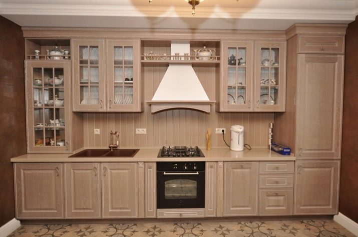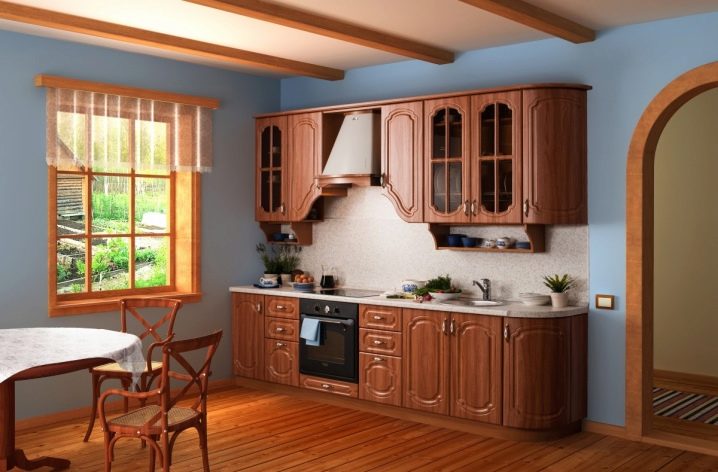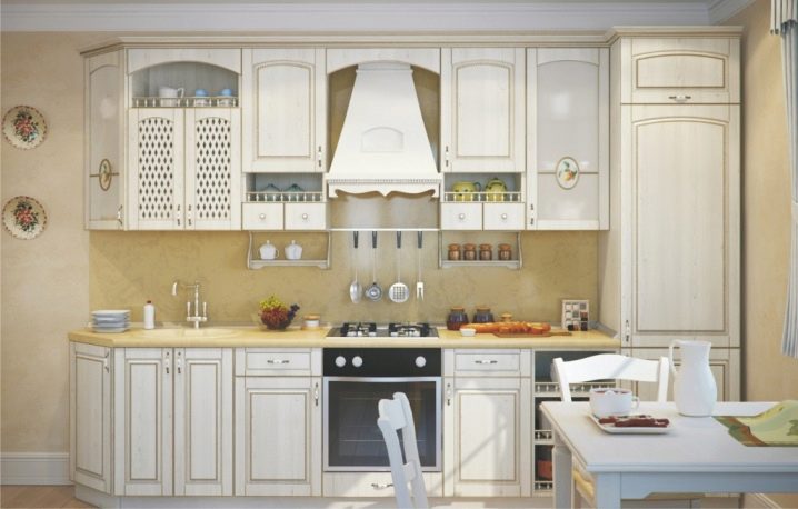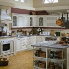 Кухненският комплект може да бъде боядисан в пастелни цветове: светло люляк, бледо синьо, праскова. Малка картина с пасторални пейзажи или рисунки на диви цветя ще изглежда страхотно. Такъв интериор ще създаде топла и уютна атмосфера..
