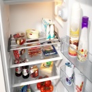 В допълнение към основните рафтове за оптимизиране на пространството, удобно е да използвате и стъкления рафт за врати.-"балкон". Те се намират на страничната врата на хладилника, тоест те са прикрепени директно към вратата. Те могат да държат държачи за яйца и бутилки. Предвидена е и оптималната температура за съхранение на различни лекарства и козметика, която трябва да се съхранява на хладно и тъмно място. Някои балкони имат капаци, което е много удобно, ако трябва да прикрепите различни дреболии.