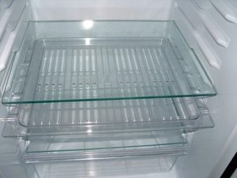 Допълнителен бонус от стъклени рафтове – прозрачните закалени стъклени повърхности украсяват вътрешността на хладилника, те са лесни за поддръжка. Основният недостатък на дизайна е пречка за нормалното движение на въздушните маси в хладилника.