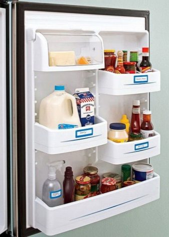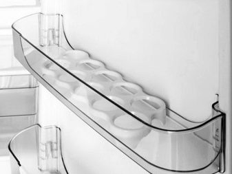 В допълнение към основните рафтове за оптимизиране на пространството, удобно е да използвате и стъкления рафт за врати.-"балкон". Те се намират на страничната врата на хладилника, тоест те са прикрепени директно към вратата. Те могат да държат държачи за яйца и бутилки. Предвидена е и оптималната температура за съхранение на различни лекарства и козметика, която трябва да се съхранява на хладно и тъмно място. Някои балкони имат капаци, което е много удобно, ако трябва да прикрепите различни дреболии.