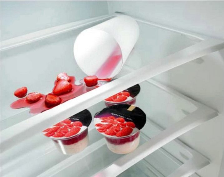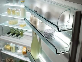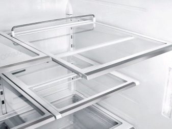 Допълнителен бонус от стъклени рафтове – прозрачните закалени стъклени повърхности украсяват вътрешността на хладилника, те са лесни за поддръжка. Основният недостатък на дизайна е пречка за нормалното движение на въздушните маси в хладилника.