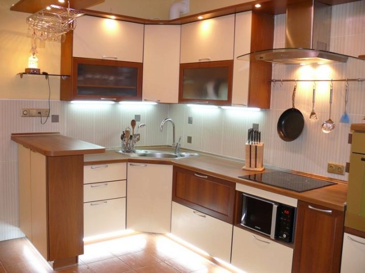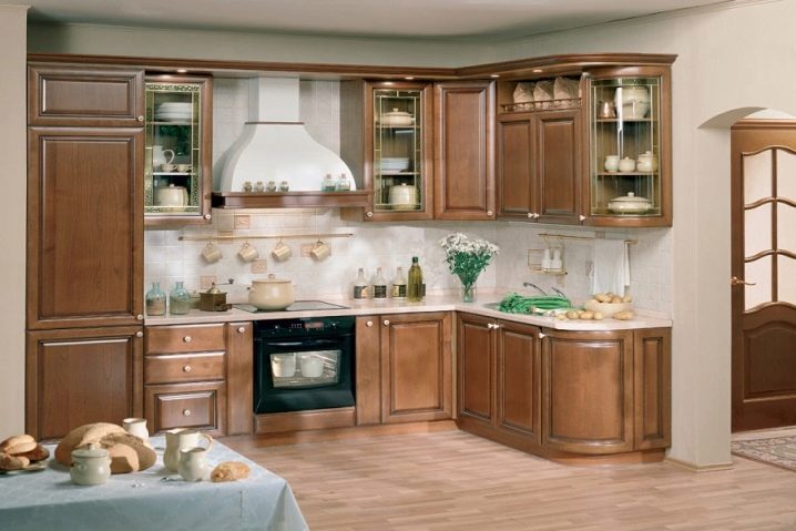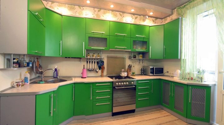 Ъглов кухненски шкаф е една от най -оптималните опции за обзавеждане в такива помещения, тъй като ви позволява да използвате почти всички налични места. Такива дизайни са подходящи както за просторни кухни, така и за много малки..