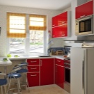 - Ъгловите конструкции ви позволяват да използвате ъгъл в “работата” на кухнята – зона, от една страна, безполезна, а от друга – много важна за кухня, особено малък квадрат. Традиционно, в мащаба на малка кухня, дизайнерите се опитват да използват всеки сантиметър свободно пространство целесъобразно, като използването на ъглите в този случай е изключително правилно решение.