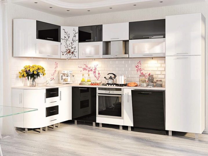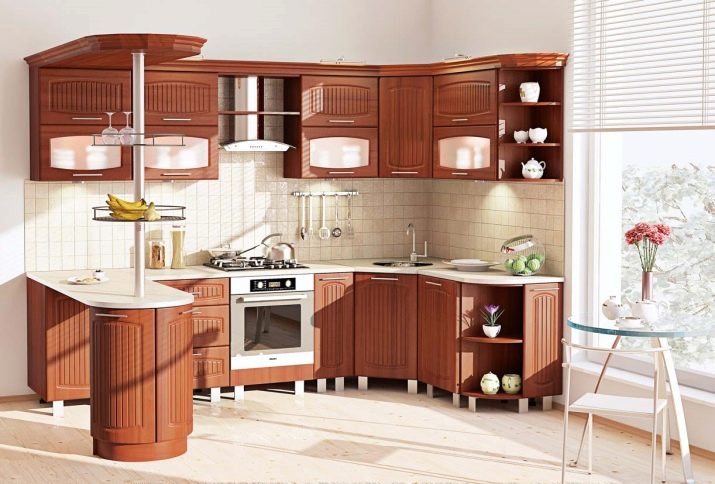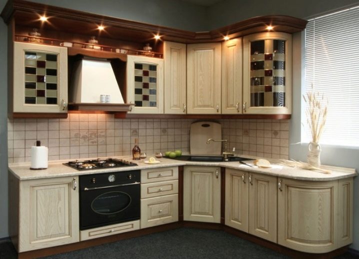 Оформлението на кухнята изисква внимателен подход и съвети от опитни професионалисти; не пестете от създаването на индивидуален дизайнерски проект за бъдещата кухня, за да осигурите максималната й функционалност. Ъгловите конструкции на базовите и стенните шкафове ще позволят да се използва изгодно кухненското пространство и да се използва, което несъмнено ще бъде оценено от домакините..
