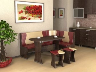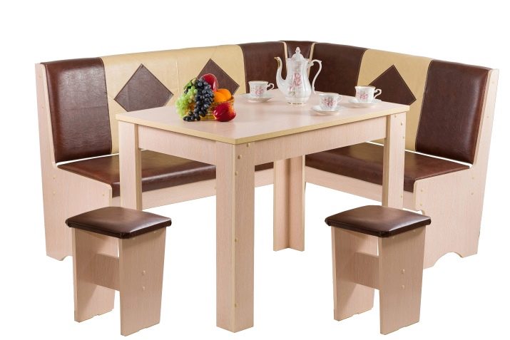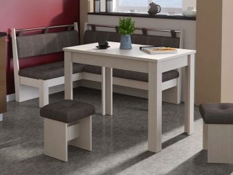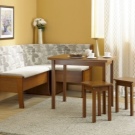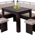 Кухненски ъгъл Tulip mini от петербургската фирма Soft Line е друг чудесен вариант за малка кухня. Размерът му е 100х100 см. Включва сгъваема маса и две табуретки. Изработена от бюджетни материали ПДЧ и изкуствена кожа. Оборудван с допълнителни чекмеджета, където можете да съхранявате зеленчуци или прибори, които не използвате, което е много важно в малка кухня.