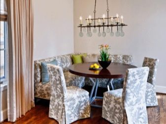 - Интересно изглеждат ъглите, които са тапицирани с два вида материя. Използвайки различни комбинации, можете да създадете дизайнерски интериор.