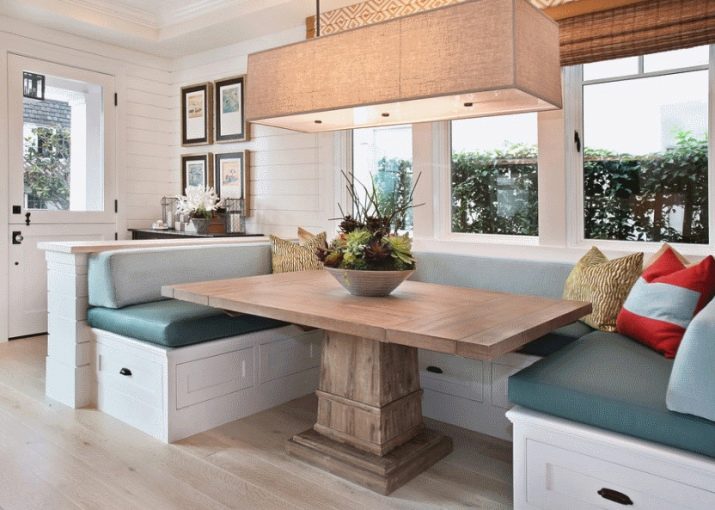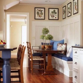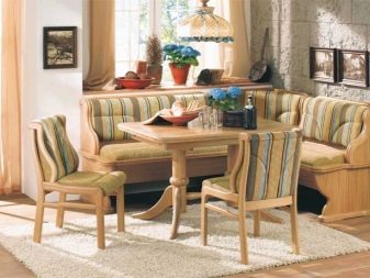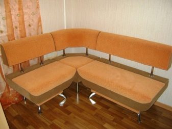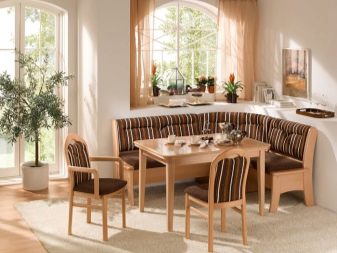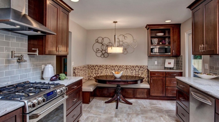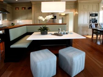 Тази мебел се състои от остров, който е инсталиран в самия ъгъл на стаята, и места за сядане с облегалки.