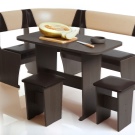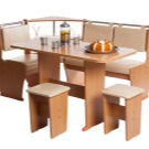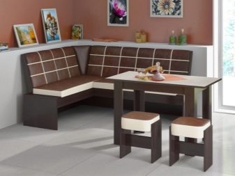 - Мини – тази мебел е изработена от ламинирано ПДЧ, седалките са от изкуствена кожа. Този ъгъл е цял комплект мебели и включва диван, маса и две табуретки. Габаритните размери на този ъгъл са 123 см в двете посоки.