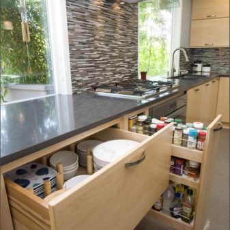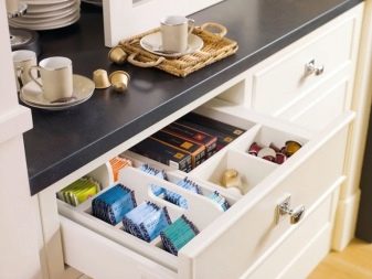- възможно е кутиите да се разделят на зони отвътре. Това може да систематизира лекия хаос в кухнята и ще помогне за бързото подреждане на всички складови площи;