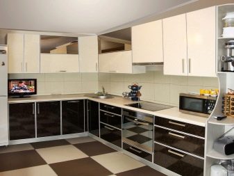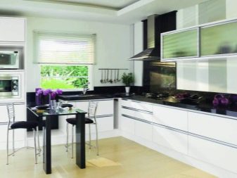Можете да подредите малко произвол: нека вратите на шкафа да бъдат дървени, а подът да е с плочки, чекмеджетата ще се плъзгат навън и ще се плъзгат сами. Нека белите стенни шкафове се комбинират с тъмни покривки за мебели – можете да използвате най -неусложнените дизайнерски идеи, ако само вашето въображение е достатъчно, а размерът на кухнята ви позволява да създавате и комбинирате.