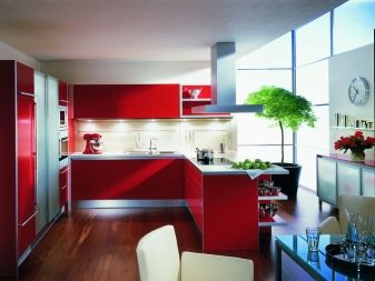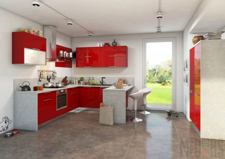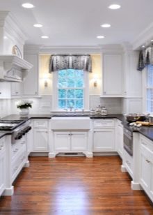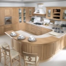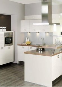 - полуостров. Изчисляването на такъв проект е предназначено за голямо пространство. Обикновено кухнята е разделена на няколко части. Бар плот или печка с мивка действа като разделител;