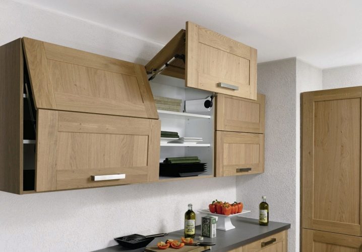 - височината на сенника зависи от ръста на човека. Основното е, че всеки възрастен член на семейството може да достигне дръжката на чекмеджетата. Можете също така да увеличите размера на рафтовете с 40-50 сантиметра, ако таваните в кухнята са високи;