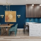 За да комбинирате правилно всички зони, трябва да съставите три от любимите си цветове, да изберете интересен стил на кухненския дизайн – и да комбинирате тези показатели на практика.