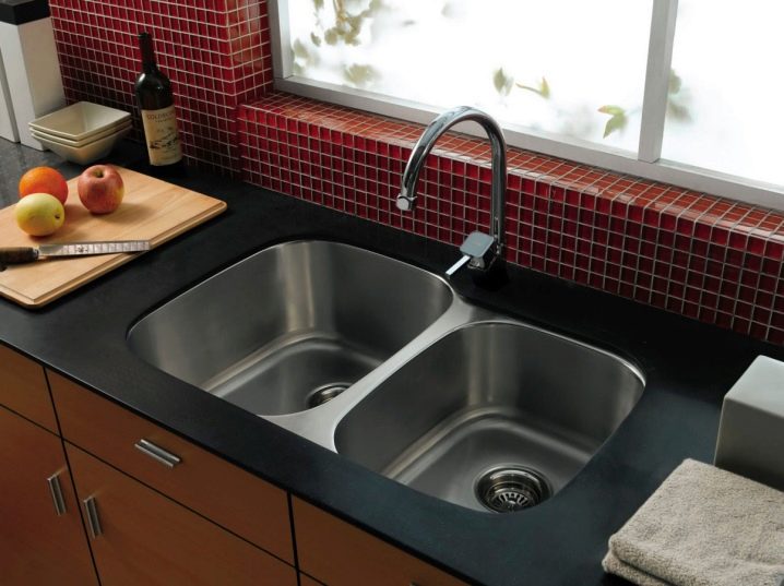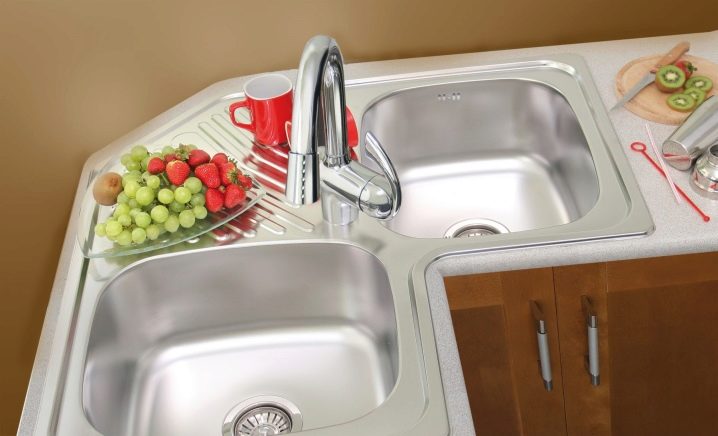 Купите могат да се различават не само по площ, но и по дълбочина. Има мивки с отделение за размразяване на храни или измиване на плодове и зеленчуци, обемът им е много по -малък от основната мивка. Купите за многосекционни мивки могат да се поставят по права линия или да имат ъглова форма. Вторият вариант е удобен за поставяне в L-образен кухненски комплект и много често имат симетрична форма. Но когато избирате мивка с много секции, имайте предвид, че ширината на основната купа не трябва да бъде по-малка от 42 см. В противен случай ще бъде неудобно да миете съдовете..