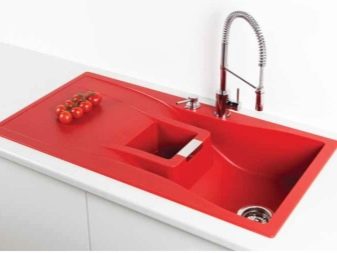 Яркочервената мивка ще добави оригиналност към кухненския интериор.