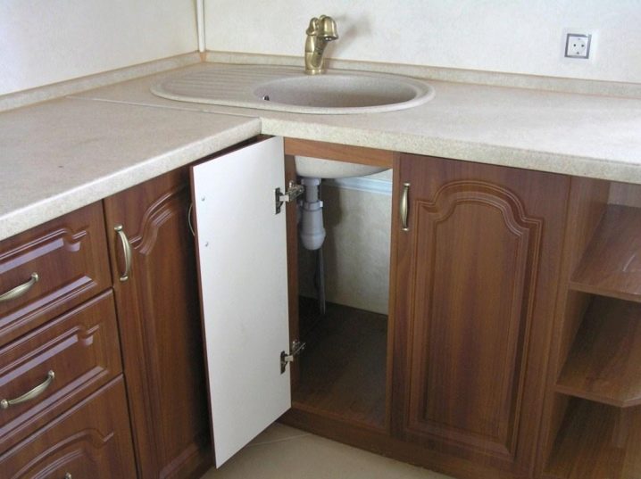 За кухни със скосени ъгли от 45 градуса, трапецовидната многосекционна мивка е идеална. Той ще бъде функционален и няма да заема допълнително работно място на масата за рязане..