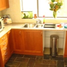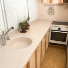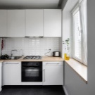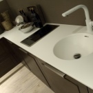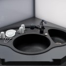 Мивката с три секции с допълнителна тава за сушене на съдове е стилно интегрирана в ъгловия кухненски комплект. Не заема пространството на работната зона и е много функционален.