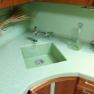Обикновено това са правоъгълни или кръгли купи. Най -често се използва в кухнята у нас. Обикновено имат дренаж за съдове, но могат и без него. Външните размери за кръгли мивки са 49 или 51 см, правоъгълните са 48×85 см, 50×77 см, 44×78 см, 51×58 см. Дълбочината е от 16 см до 20 см. Всяка компания, която произвежда кухненски мивки, разбира се, има свои собствени размери, но тези цифри ще ви помогнат да се ориентирате при изготвянето на вашия кухненски проект.
