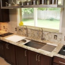 Мивка от две тъмнокафяви секции, вградени под плота, с необичайна форма-чудесен вариант за селски стил.