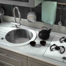 Ако не можете да инсталирате голяма мивка в кухнята си, но имате нужда от нея, компенсирайте това с дълбочина. В дълбока мивка, въпреки че размерът й няма да бъде голям, ще ви бъде доста удобно да миете чиниите. Избирайки кръгла мивка в този случай, вие не само ще можете да намерите място за перилни препарати, но също така ще бъде лесно да премахнете съдовете от малка купа..