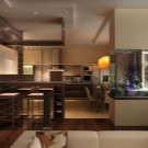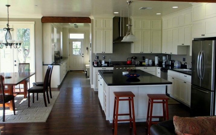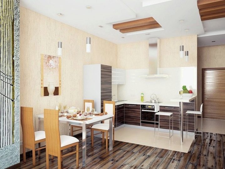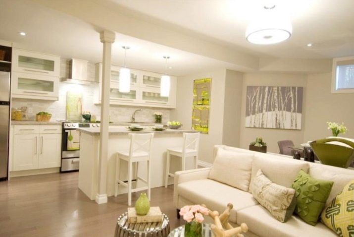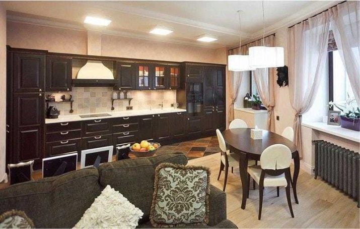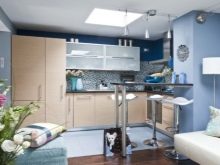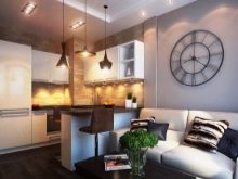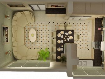 Заслужава да се отбележи, че такова планиране на комбинираните кухненски и холни зони е традиционно западно явление. Дойде от онези страни, където хората не са свикнали да приготвят сериозни ястия у дома: супи, сладкиши и др. Кухненската им площ се използва максимално за приготвяне на леки закуски, чай и кафе, загряване на полуфабрикати в микровълновата. Така че кухнята в такъв комбиниран интериор играе по -скоро ролята на кафене или бар..
