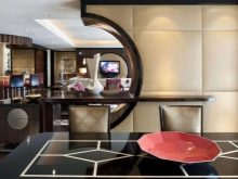 Често срещан и много популярен вариант е да се създаде една стая в стил кафе с бар преграда. Идеята е съвсем проста – правоъгълна конструкция с плот е инсталирана на границата на хола и кухнята. Оказва се, че в кухнята можете да приготвите закуски и напитки и да ги сервирате през плота в хола. Над такава преграда можете да инсталирате елегантни лампи, да поставите удобни бар столове пред нея. Това оформление напоследък е много популярно, особено в младите семейства..