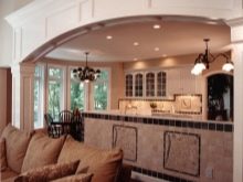 Можете да създадете красива арка, разделяща зоната на кухнята и хола, като използвате минимум инструменти и материали и е напълно възможно да завършите работата в малък апартамент за 1-2 дни. Той ще бъде не само отличен визуален разделител, но и функционален елемент, тъй като до известна степен улавя шума, миризмите и парата от кухнята, можете да направите ниши в него за съхранение на неща..
