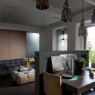 В него можете да организирате оформлението на функционалните зони на кухнята-трапезарията-хола по един от начините, описани в предишния раздел.