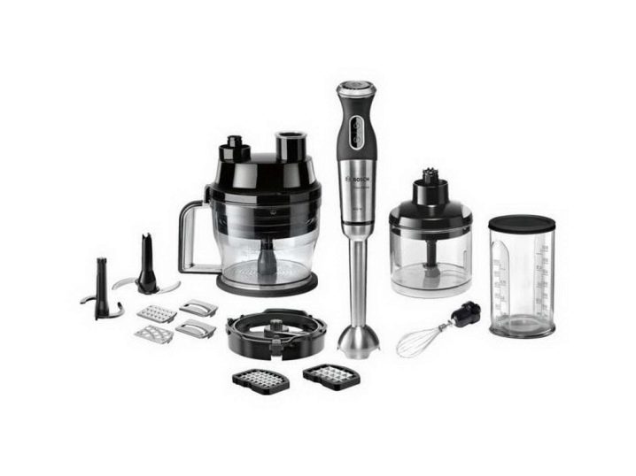 Това е почти цял кухненски робот, включва толкова много различни функции. Но цената му е доста голяма, така че тук е важно да се уверите, че имате нужда от всички тези функции. Например, има дванадесет скорости, безстепенен контрол на скоростта, турбо режим и ренде, както и специални приставки, които нарязват храната на филийки или кубчета. Отделна дюза за месене на тесто.
