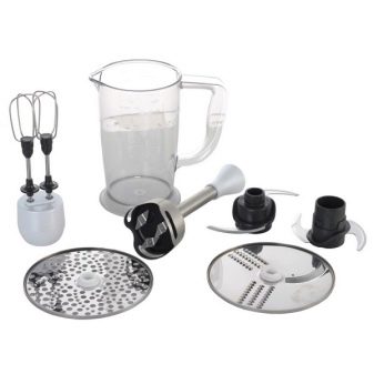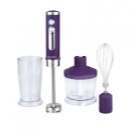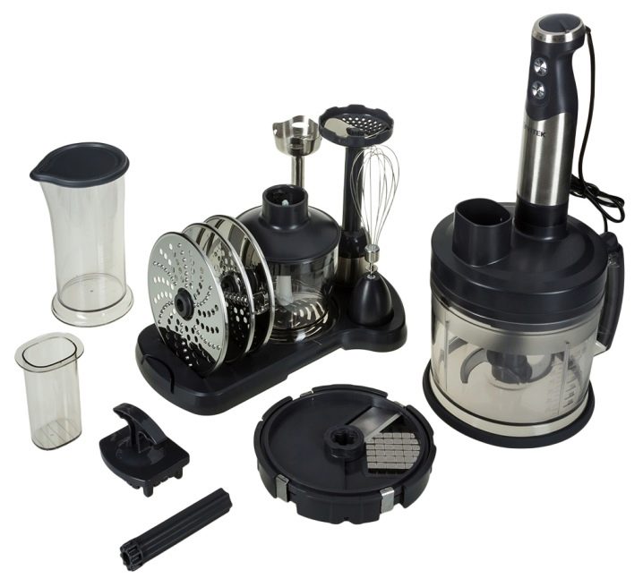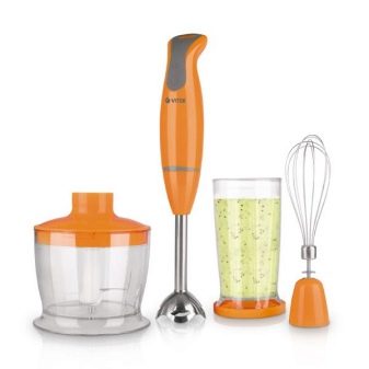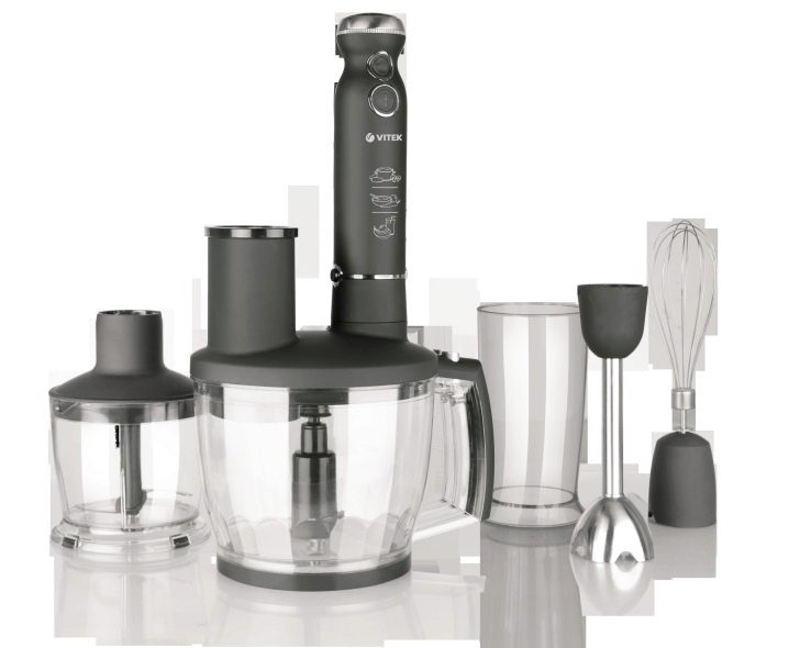 Ръчният блендер е незаменим инструмент във всяка кухня. С негова помощ процесът на приготвяне на много различни ястия се ускорява значително. Потопяемият блендер прилича на дълга дръжка, долната част на която е оборудвана с нож с две остриета. По -модернизираните модели имат няколко сменяеми приставки, включително бъркалка за разбиване. Стандартният комплект включва високо стъкло, изработено от висококачествена пластмаса. Особеността на този контейнер е, че е проектиран за условия на висока температура и е подходящ за нагряване на храна в микровълнова фурна. Моделите, които са произведени наскоро, могат да бъдат допълнени с два контейнера с различен обем, единият от които има специален капак на клапана, който предпазва от пръски по време на работа на блендера.