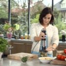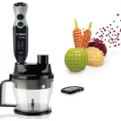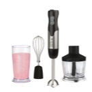 Предимства: Има балансирано тегло на гравитацията, а дръжката е покрита със специален материал за удобна употреба. Мощност на блендера – 750 W. Има 12 режима и няколко скорости, така че можете да промените скоростта на раздробяване с едно докосване.