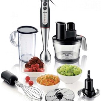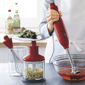 - наличие на допълнителни прикачени файлове – в комплекта цяла поредица от допълнителни шлифовъчни машини (специална купа, вътре в която се смилат най -твърдите продукти), дюзи и мерителни чаши винаги отиват към самото устройство. Приставките са необходими за различни видове разфасовки. Например, с нож, нарязан на кубчета, можете лесно да накълцате зеленчуците в салата, а ако използвате малки зъби, можете да направите кайма от месо;