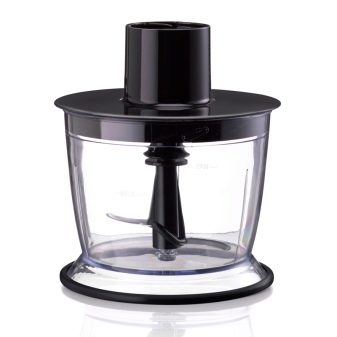 - чопър – Това е чаша, която може да има различен обем. В центъра му има остриета и електрически статив. Като свържете купата към основата на дръжката, можете да създадете стационарен блендер. Също така, освен купата, може да има различни остриета за нарязване на храната на кубчета, филийки или клинове. Благодарение на такава дюза устройството лесно се справя с раздробяването;