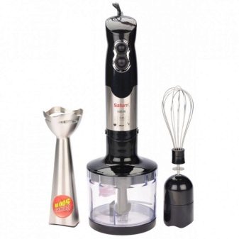 Друг висококачествен ръчен блендер от руски производител е Saturn. Устройството има редица предимства, например приятна цена, метален корпус (което е много важно за дълъг експлоатационен живот) и приставки. Той има мощност от 400 W и две скорости. Освен това във функционалността има друг режим: импулсен. Като държи в рамките на доста ограничен бюджет, компанията оборудва този механизъм с максимални възможности..