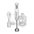 Удоволствие е да използвате MQ 5045 WH Aperitive – елементите на дръжката са разположени по такъв начин, че можете да контролирате скоростта на въртене на острието с едно докосване на пръста си. Без да освобождавате устройството от ръцете си, можете да включите турбо режима, да смените дюзата или просто да я изключите. Комплектът включва: