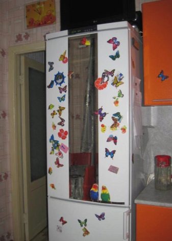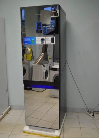 Също така хладилник с огледални врати ще бъде подходящ в модерен интериор. В същото време под формата на огледало и двете врати могат да бъдат напълно изпълнени или просто да е рамкирана лента.