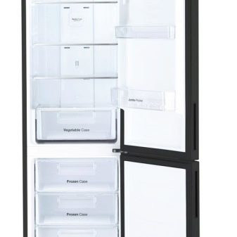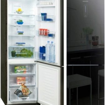 Daewoo RN-V3610GCHB. Огледален хладилник, който не само ще украси вашата кухня, но визуално ще увеличи пространството. Устройството има охладителна система, която не изисква размразяване, No Frost. Системата за управление е изцяло електронна и има удобен сензорен панел. Общи размери 200x60x67 см. Цената на устройството е около 40 000 рубли.