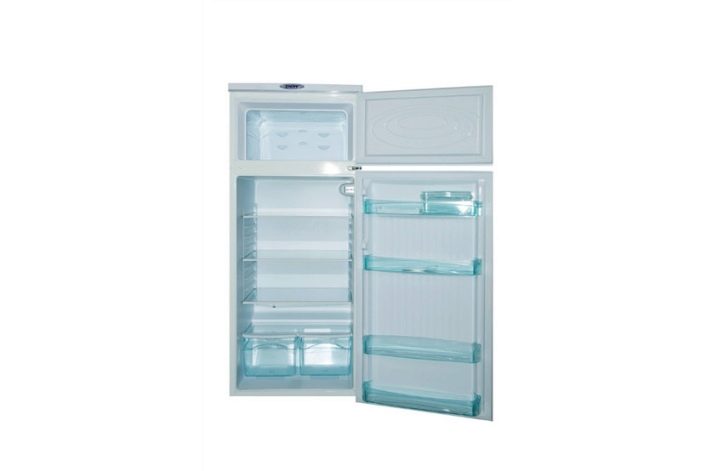 Don R 216 B. Хладилникът е с малки размери. Чудесен вариант за селска къща. Оборудван е с всичко необходимо: стъклени рафтове от високоякостен материал, тави за съхранение на зеленчуци, чиния за яйца, рафтове на вратата. Освен това хладилникът има шум от едва 38 dB. Общите размери на това устройство са 57,4x61x141,5 см. Цената е около 14 500 рубли.