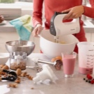 Комплектът за миксер включва и приставка за размахване за приготвяне на домашна майонеза и картофено пюре, както и бъркалка за приготвяне на протеинови кремове, бита сметана, сосове, тесто и коктейли. Друга приставка е мелница, може да се използва като ренде за сирене, а също и вместо кафемелачка. С негова помощ можете също да смилате всякакви зърнени храни или ядки..