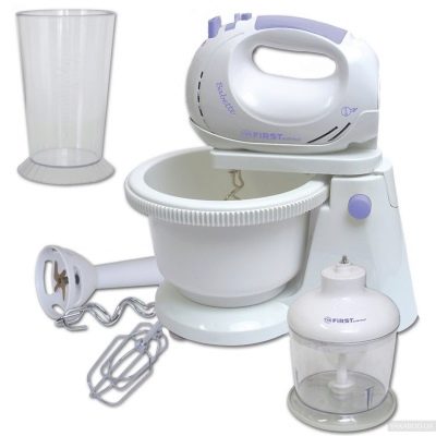 - Такъв производител се различава по това, че предлага на клиентите всички видове смесители. Това са както ръчни, така и домашни стационарни и планетарни модели. Модел на ръчен миксер Първо FA-5257 спечели широко признание сред потребителите поради ниската си цена. Това е стационарен модел, чиято цена варира от 2000 до 3000 рубли. В допълнение, той идва с приставка за пасатор и чопър, който може перфектно да замени месомелачка..