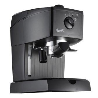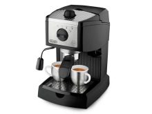 Един такъв модел – Delonghi EC 145. Това е машина за рожков, с която можете да приготвите две порции напитка, в нея се поставя 1 литър вода, пара се подава под налягане от 15 бара. Корпусът е изработен от черна матова пластмаса, устройството не е достатъчно тихо, можете да усетите вибрации, но по този начин всички такива устройства работят и това е норма за тях.