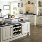 - Керамичните плочки са един от най-търсените продукти, които се използват в кухните при организиране на подове. Този материал също има значителен брой цветове, форми и размери. Това прави възможно създаването на много красиви и оригинални дизайни. Керамичните плочки са изключително издръжливи и устойчиви на износване, което прави възможно използването им повече от 10 години без нужда от подновяване. Закрепването на плочките се извършва на специални разтвори, което прави възможно, дори при липса на умения, да се направи сравнително добре.