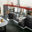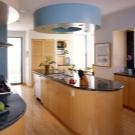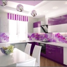 - Тапет. Обикновено в такива помещения се предпочитат перални или багрилни материали. Това им позволява да запазят презентабелния си вид за дълго време. Понякога можете да използвате други видове подобни материали, които комбинират и създават дизайнерско разделение на кухнята на няколко функционални зони..
