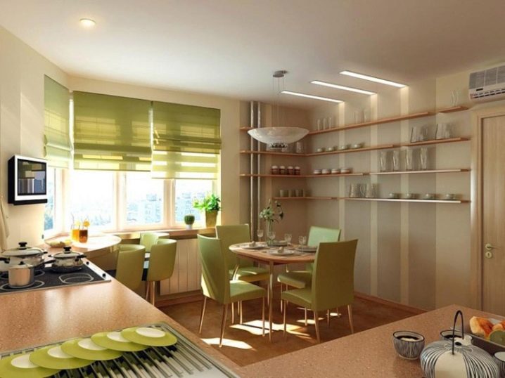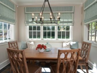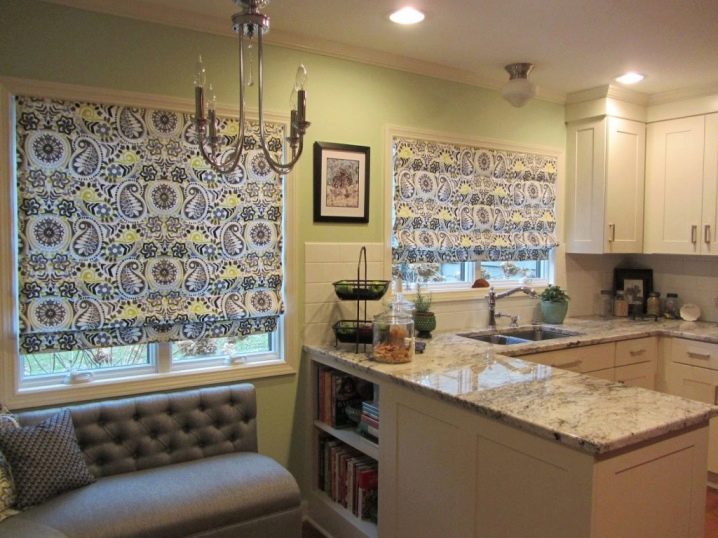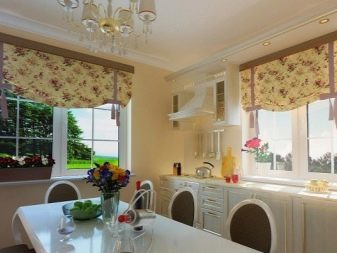 Римските щори ви позволяват да създадете уютен кухненски интериор в различни стилове.