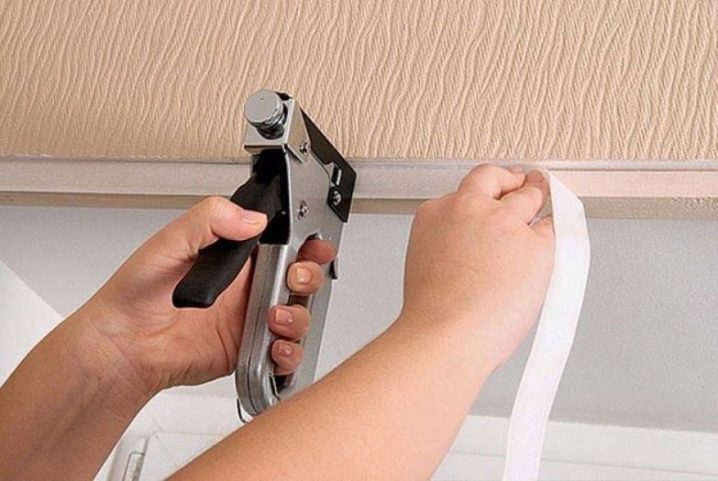 За да стане завесата по -тежка, трябва да се направи сгъване и шнур на долната част. Ще получите джоб, в който е поставена специална лента.