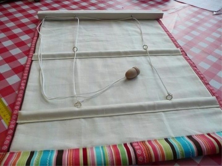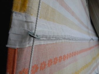 От шевната страна е зашита довършителна граница, образуваща връзки, в които се вкарват пластмасови пръти. В този случай единият ръб на такива джобове е зашит, а другият не. Това се прави, така че пръчките винаги могат да бъдат извадени преди измиване на римската сянка. В този случай пластмасата е идеалният материал. Такива пръти няма да се хванат за тъканта и няма да развалят външния вид на продукта..