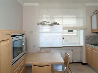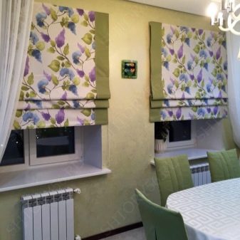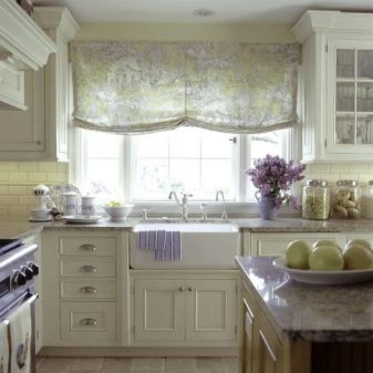 Римските щори ви позволяват да създадете уютен кухненски интериор в различни стилове.